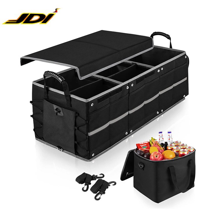 Collapsible Trunk Organizer for Car with Insulated Leak proof Cooler Bag